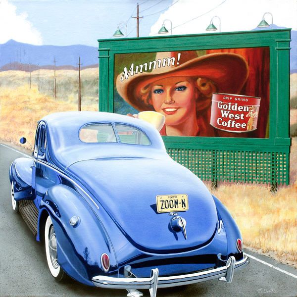 "A Coupe. A Coffee." 1939 Ford Coupe. The first painting purchased for the museum. Acrylic on canvas 30" x 30".