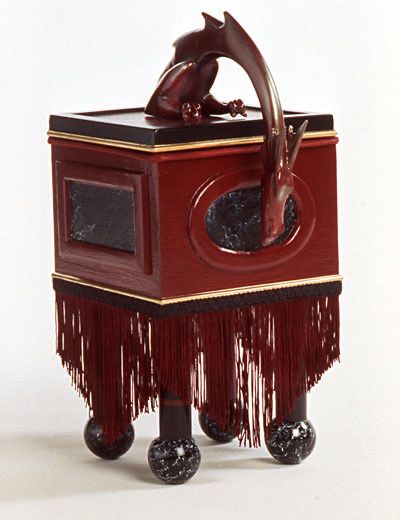 Dragon Box. Mixed media with mirror-lined interior. Approx. 13" tall. (Sold)